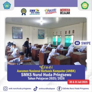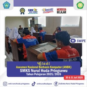 Pringsewu, 7 Agustus 2025 – SMK Nurul Huda Pringsewu telah melaksanakan uji coba ANBK (Asesmen Nasional Berbasis Komputer) untuk mempersiapkan diri sebelum pelaksanaan asesmen utama. Simulasi ini difokuskan pada pengecekan perangkat teknologi, koneksi internet, serta pembekalan teknis bagi siswa.