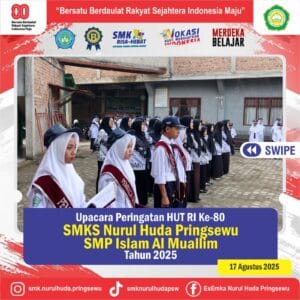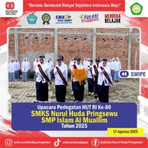 PRINGSEWU – Dalam rangka memperingati HUT ke-80 Kemerdekaan Republik Indonesia, SMK Nurul Huda Pringsewu menyelenggarakan Upacara Bendera dengan penuh khidmat dan kebanggaan pada hari Minggu, 17 Agustus 2025. Upacara yang digelar di halaman sekolah tersebut diikuti secara tertib oleh seluruh civitas akademika, termasuk siswa, guru, dan staf karyawan.