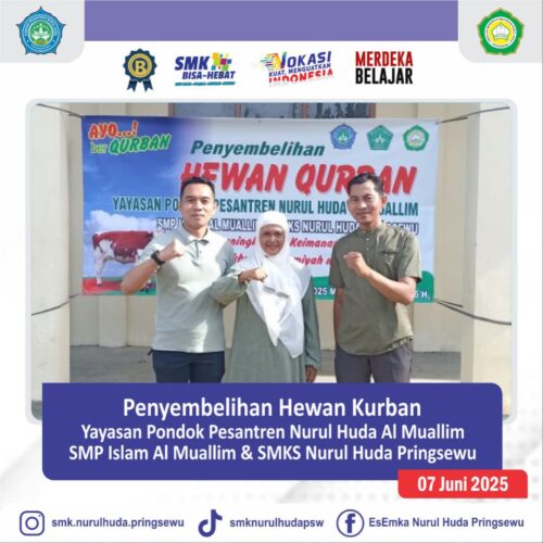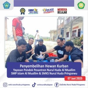 Pringsewu, 07-06-2025. Memperingati Hari Raya Iduladha 1446 Hijriyah, SMK Nurul Huda menggelar penyembelihan hewan qurban sebagai wujud kepedulian dan keikhlasan dalam berbagi. Kegiatan ini melibatkan partisipasi aktif siswa, guru, serta warga sekolah, sekaligus menjadi sarana edukasi tentang makna ibadah qurban.